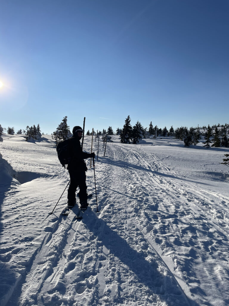 Tak jak wspomniałem wyżej, jesteś w 100% niezależny. Naklejasz foki (taśmy, dzięki którym masz możliwość podchodzenia w górę stoku — nie zsuwasz się nawet na stromych ścianach), przepinasz wiązania do opcji podchodzenia (set gotowy do podchodzenia/chodzenia wygląda bardzo podobnie jak zestaw narciarski), regulujesz kijki pod swój wzrost (tak.. kijki takie same jak te narciarskie) i lecisz w górę! Tzn. podchodzisz. :). „Ile wejdziesz, tyle zjedziesz”, czyli im wyżej wchodzisz, tym dłużej zjeżdżasz na dół. Teoretycznie banalne, ale mi osobiście dało to mega zajawę.